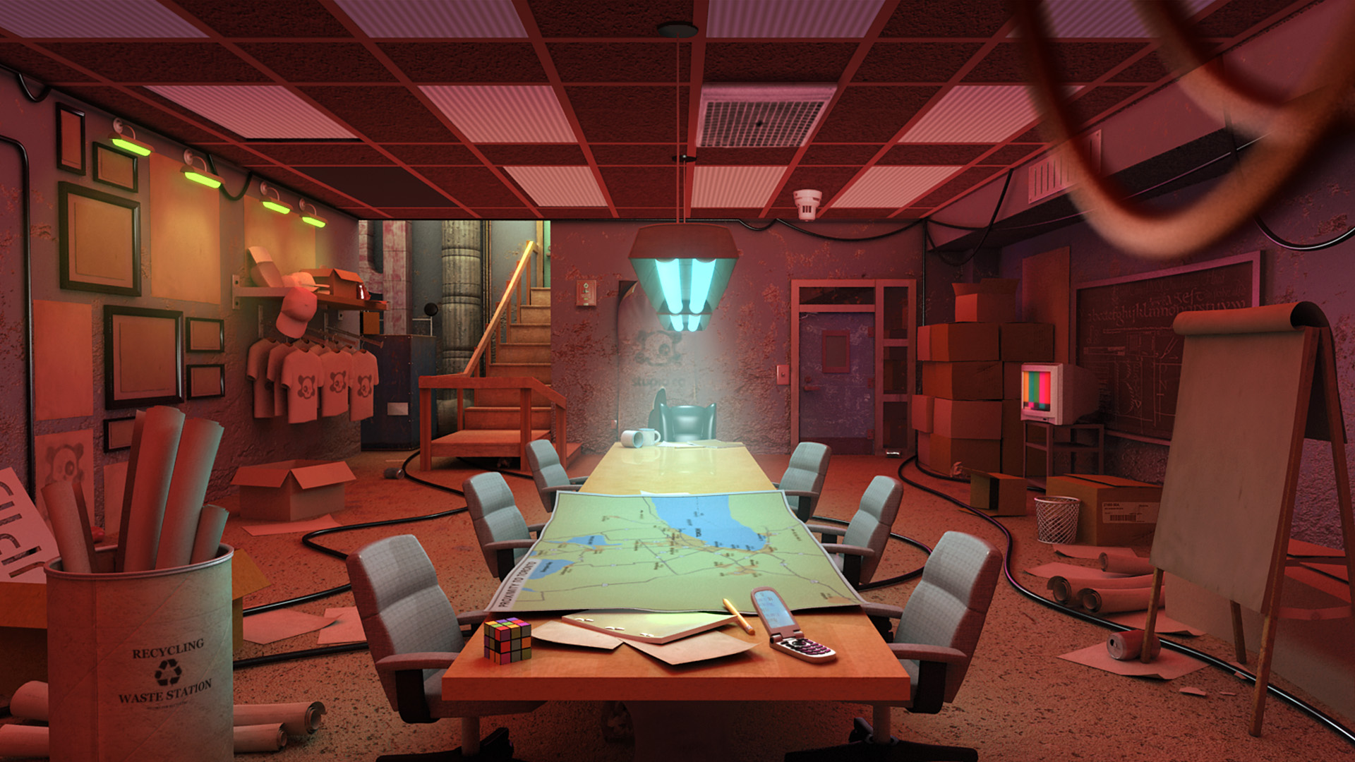 Each of the rooms were color graded in a specific hue to reflect the mood and atmosphere of the environment.