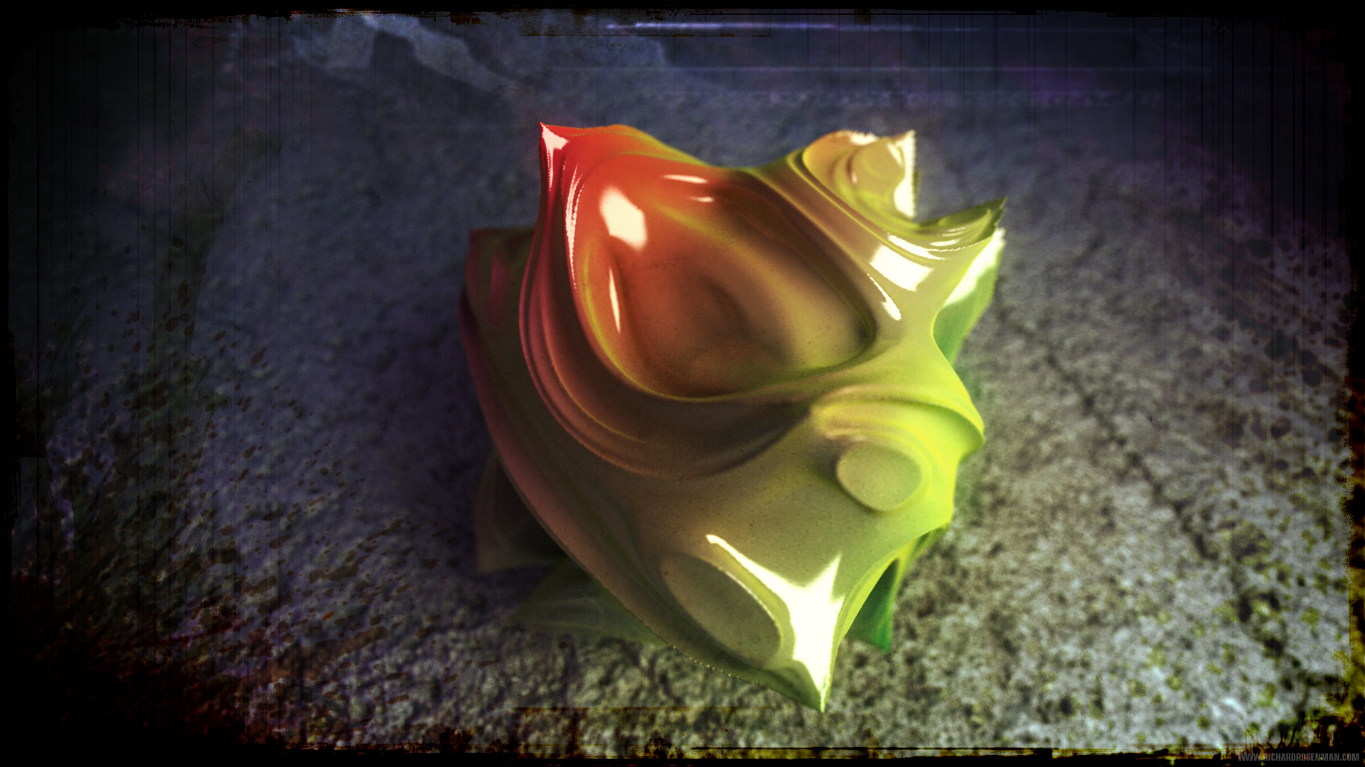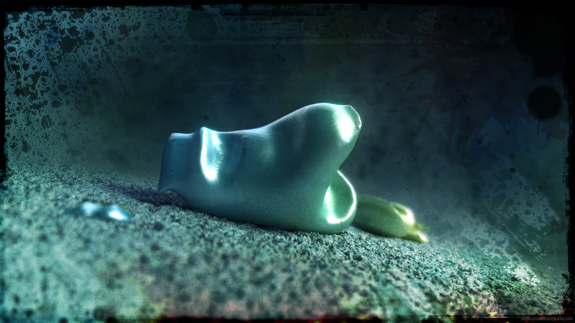 Once textured, lit and rendered, the images were heavily processed in Photoshop where color correction and post effects were applied as a final pass. About 75% of the work in each image was done in Photoshop using a Cintiq.
