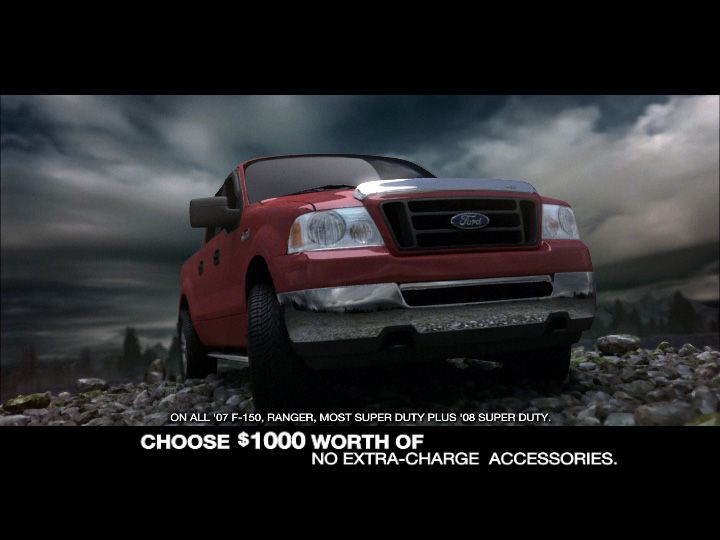 The spot features the 2007 Ford F150 accessories transforming onto the truck from various dynamic angles. As the parts continue to transform, the pacing increasingly builds up until the commercial comes to a dramatic finale. Combined with a frenetic soundtrack, the spot delivers an explosive display of visual energy sure enough to get everyone’s adrenaline flowing.