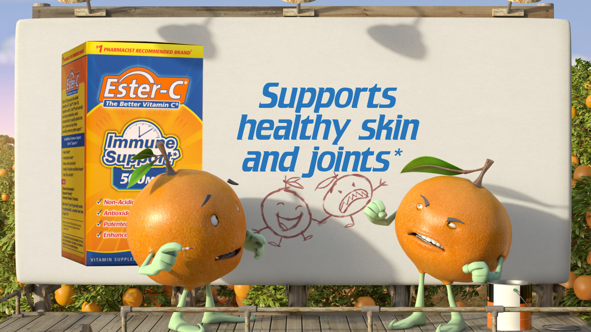 Ester-C “Billboard” is a follow-up sixth spot to the previous set recently completed. It features two comedic orange characters that were developed for the branding of the new vitamin product.