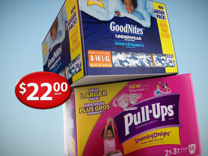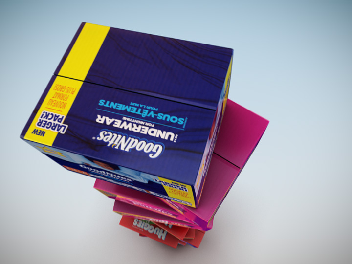 A simple but elegant spot developed for Huggies Canada, featuring a stack of diapers that collapses to reveal the product shot.