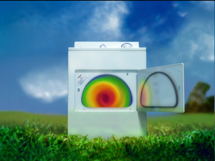 This involved quite a bit of pre-production – more so than usual – as it was extremely important to understand how it would have to be physically constructed in order to achieve this. Each bendable piece of the product box would have to somehow reveal one of the physical pieces of the dryer by flipping over and adjusting it’s position and scale to match the proportions. The box was therefore split up into the number of parts that the dryer had, and each animated piece corresponded to it’s own animated dryer part. The final transformation worked very gracefully in the end. Lots of photographs were inconspicuously snapped at selected dryer stores. Finally, there was quite a bit of post processing done to the render to take some of that computer generated edge off.