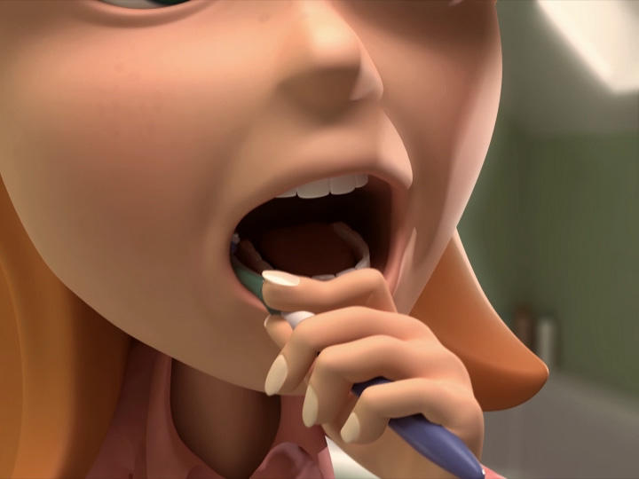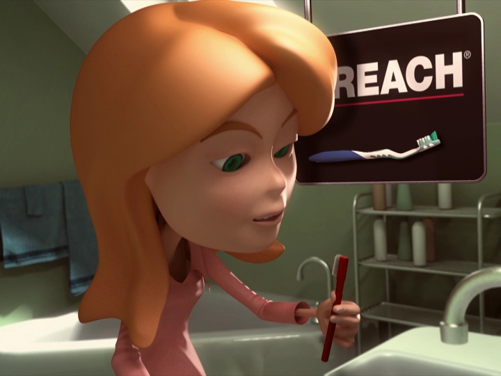 This is one of two spots produced for Reach. Appropriately named “Conveyor”, it features a character being able to brush her teeth by sliding her teeth within her mouth.