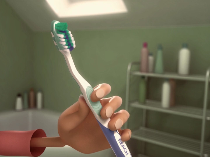 This is one of two spots produced for Reach. Appropriately named “Conveyor”, it features a character being able to brush her teeth by sliding her teeth within her mouth.