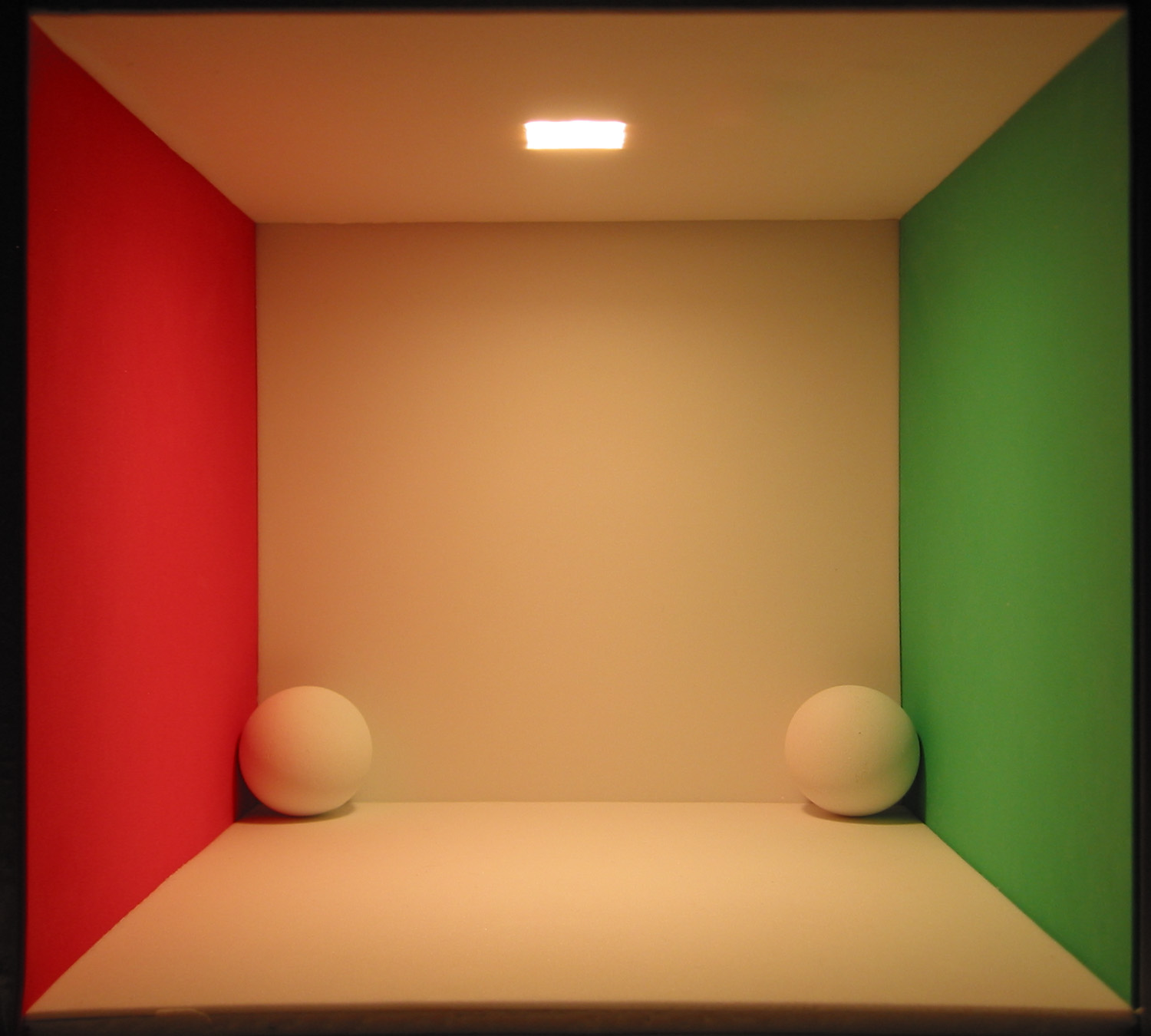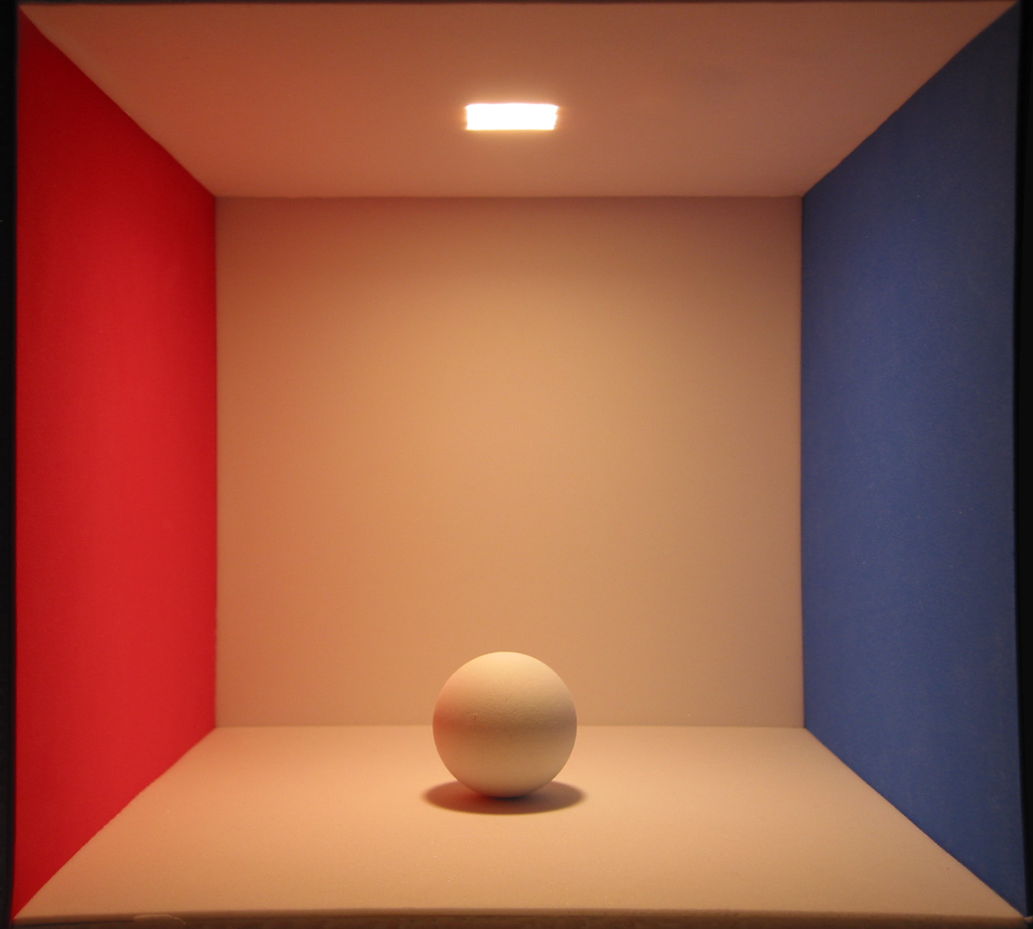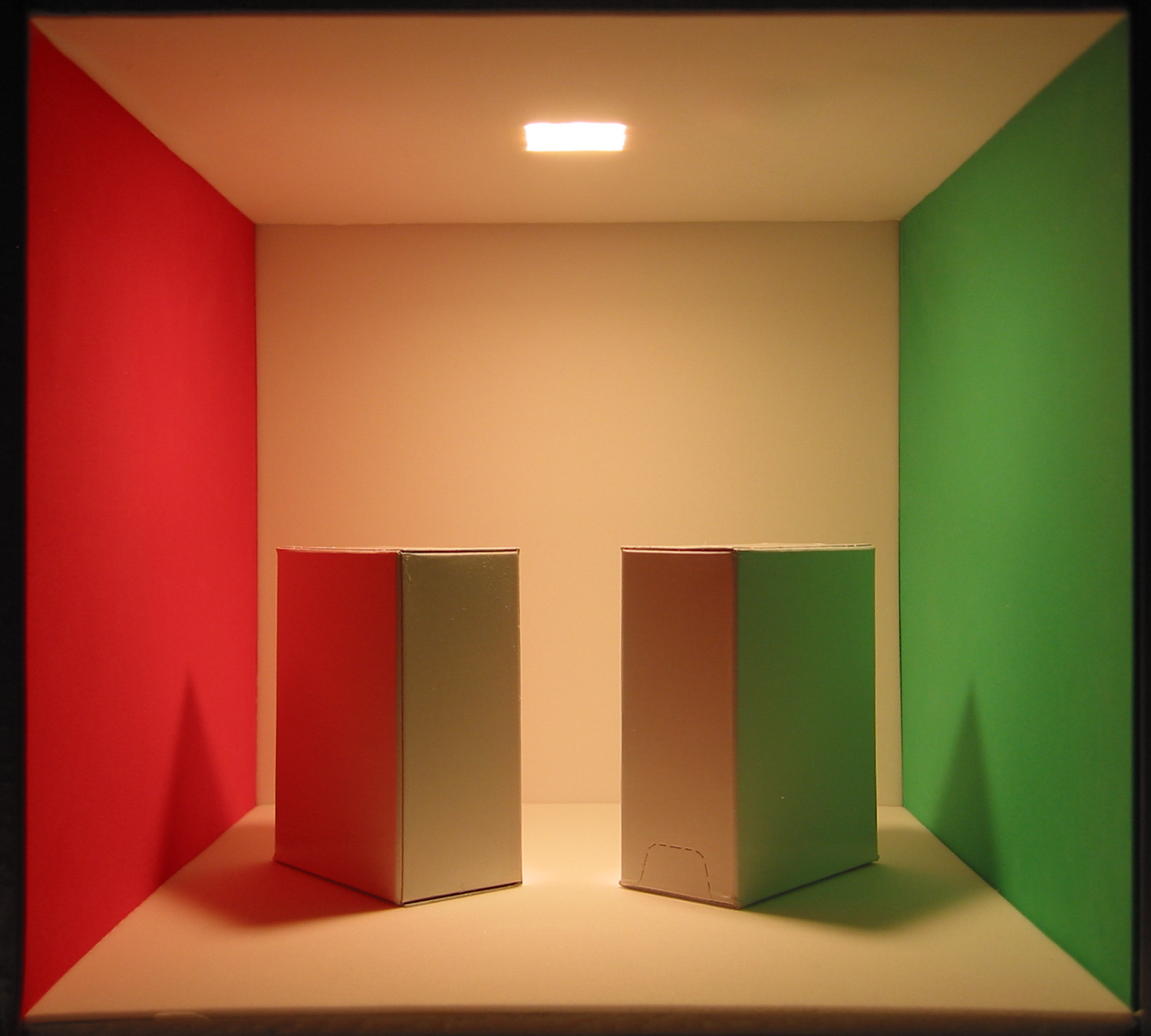 The Cornell Box is a simple physical environment in which lighting, geometry, and material reflectance properties are measured and then compared to a computer generated model in order to test simulated lighting accuracy.
