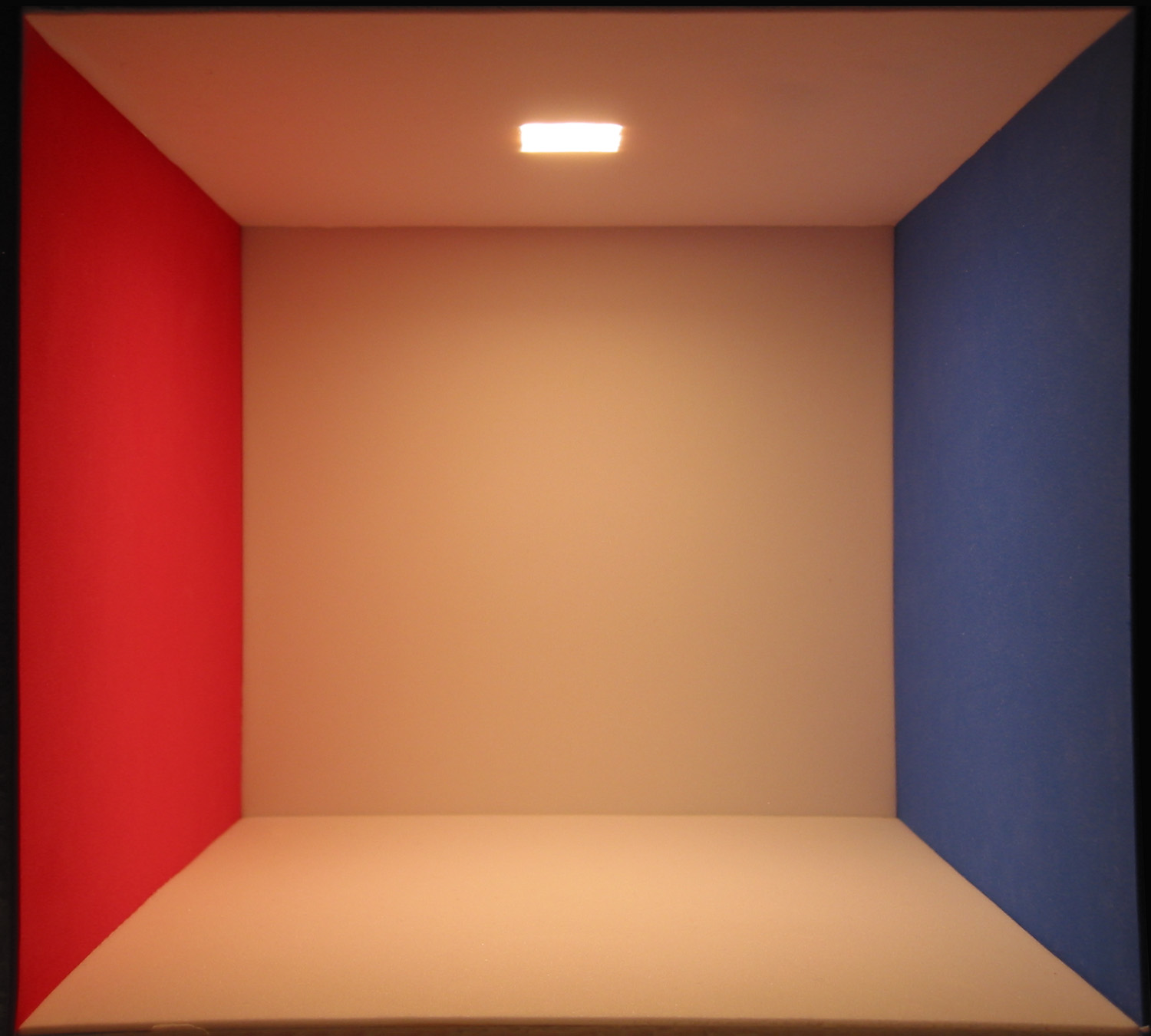 The Cornell Box is a simple physical environment in which lighting, geometry, and material reflectance properties are measured and then compared to a computer generated model in order to test simulated lighting accuracy.