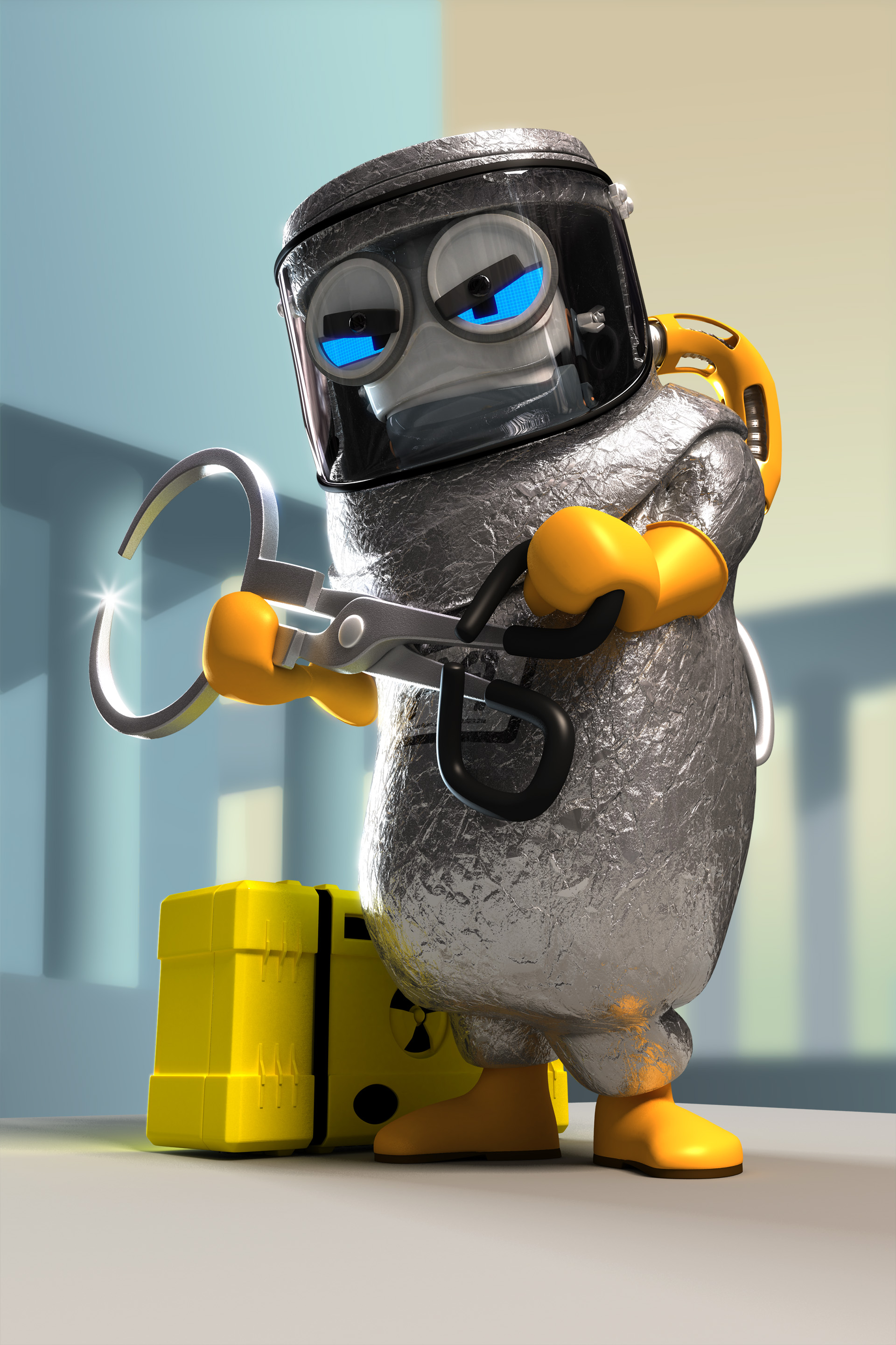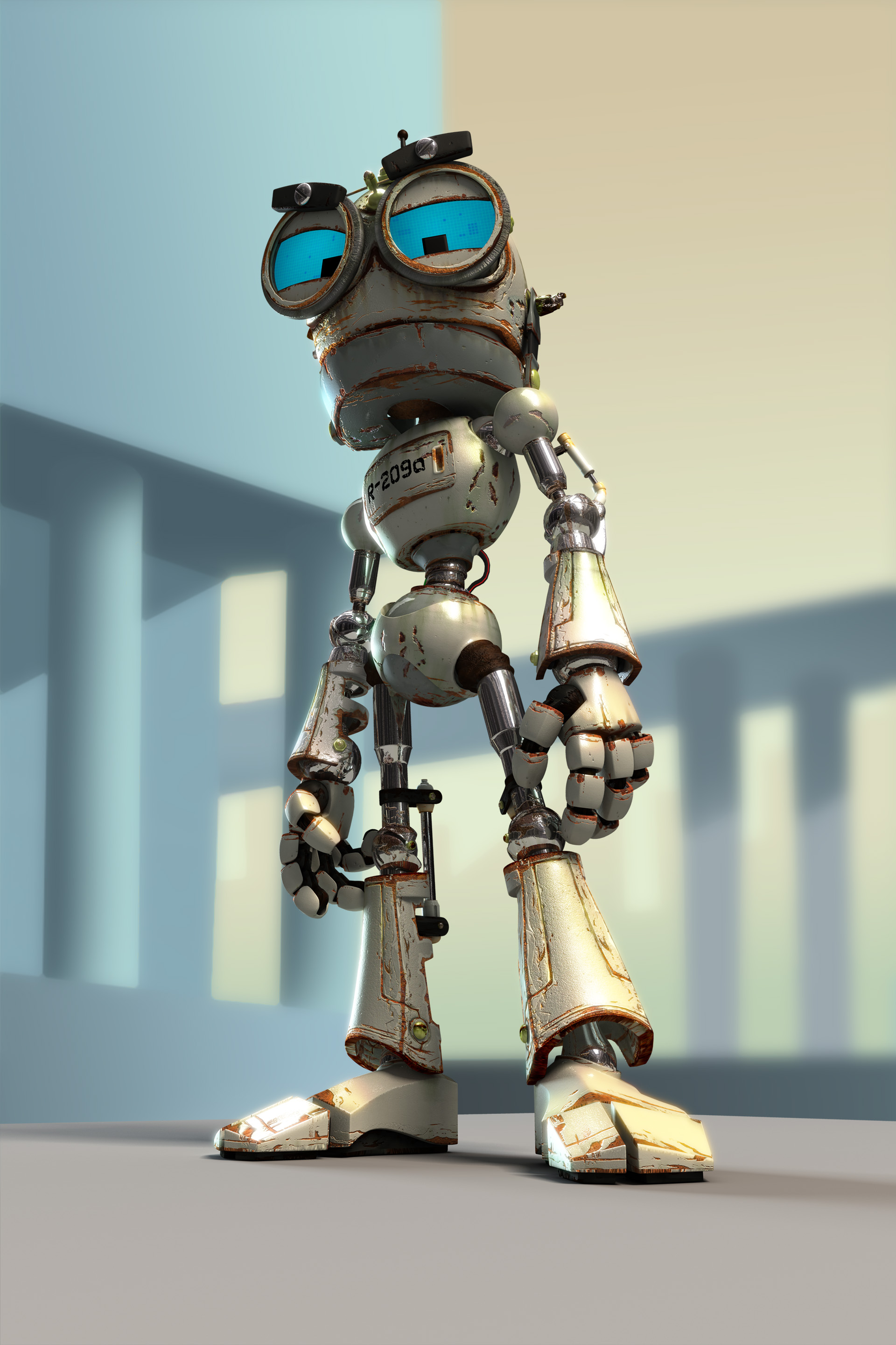 These are the character prints developed for our short film, D.A.N.D.Y. I performed texturing, lighting and rendering for these prints and they were a lot of fun. I created six different versions of the robots; the clean civilian, the rusting civilian, the rusted civilian, the police, the military and the EPA. Because we wanted to ensure all the robots looked alike, we created different suits and props that could be fitted on each one.