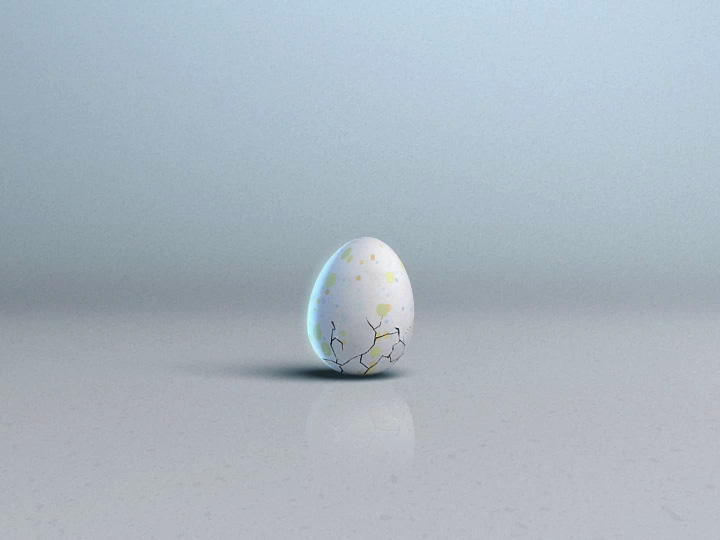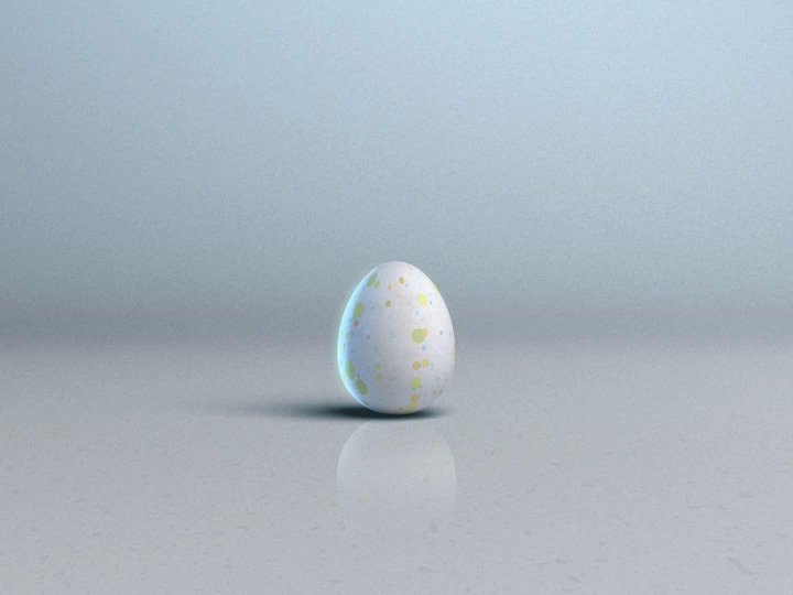 The goal was to create one sequence that would then be split into various parts and authored appropriately with Macromedia Flash. The user would be able to pick up the egg and release it, only to watch it fall and break into smaller pieces.