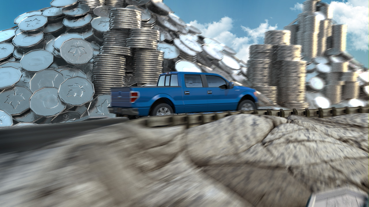 This is the third of three spots recently completed for Ford Canada featuring photorealistic vehicles driving across lush, 2D pop-up Canadian regions.