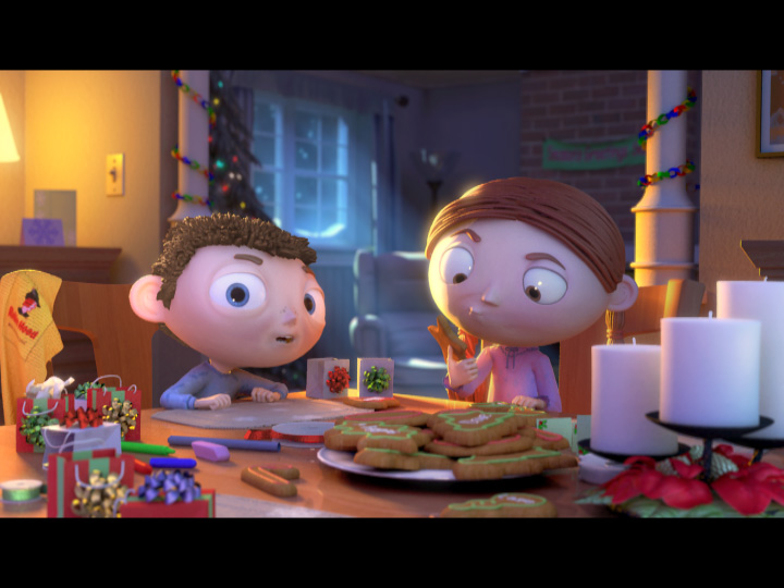 Robin Hood “Giving” is the third and final spot for 2005 created by Redrover Animation Studios Ltd. for Smuckers Canada, represented by Ogilvy & Mather Canada. The spot once again reveals Andrew and Elizabeth being interviewed, this time at the dining room table in the evening. As this is a spot intended for the holiday season, they are shown wrapping their gingerbread cookies in gift boxes for “all of their favourite people in the whole world.” The table shows various gift-wrapping accessories, the freshly baked cookies (complete with handwritten names), a glamorous holiday candle ornament, and a kitchen cloth with the Robin Hood logo. The cold winter setting outside contrasts the warm dining room lighting inside and helps develop a cozy holiday atmosphere. Currently, Andrew and Elizabeth are on the front page of the Robin Hood website.