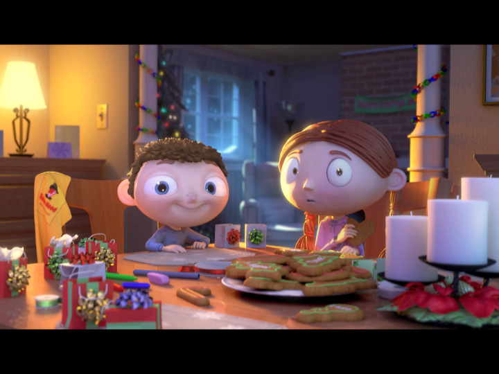 Robin Hood “Giving” is the third and final spot for 2005 created by Redrover Animation Studios Ltd. for Smuckers Canada, represented by Ogilvy & Mather Canada. The spot once again reveals Andrew and Elizabeth being interviewed, this time at the dining room table in the evening. As this is a spot intended for the holiday season, they are shown wrapping their gingerbread cookies in gift boxes for “all of their favourite people in the whole world.” The table shows various gift-wrapping accessories, the freshly baked cookies (complete with handwritten names), a glamorous holiday candle ornament, and a kitchen cloth with the Robin Hood logo. The cold winter setting outside contrasts the warm dining room lighting inside and helps develop a cozy holiday atmosphere. Currently, Andrew and Elizabeth are on the front page of the Robin Hood website.