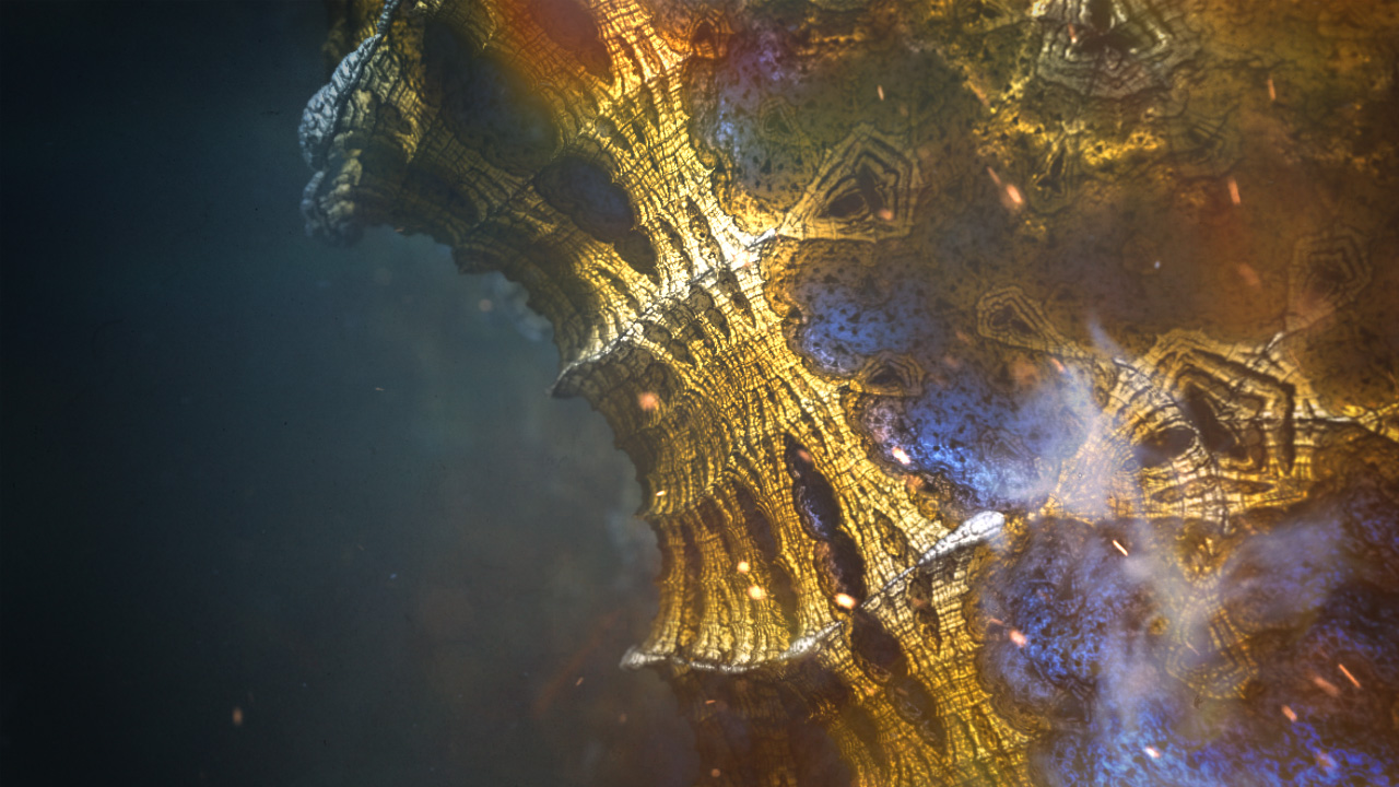 Because the animation of these fractals suggests a similarity to sea creatures & plant life, the compositing was treated as such thereby creating dark and mysterious underwater abstract shots.