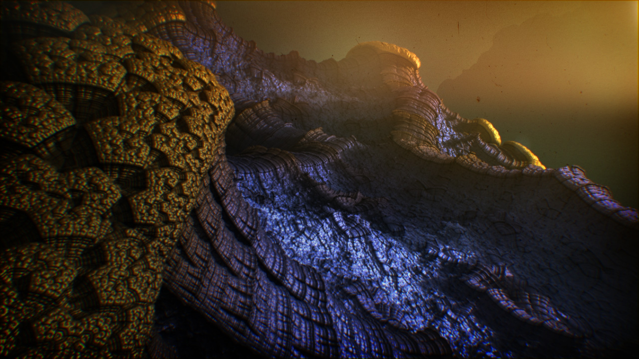 Each shot required customization of the fractal parameters to find a new & unique shape, followed by a lighting setup (using spotlight and camera light), followed by rendering / export, followed by After Effects treatment & compositing.