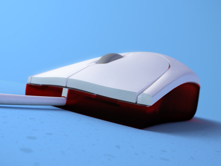 This was a fairly straight forward modeling, lighting and rendering project to present four simple yet elegant renders of Logitech’s optical wheel mouse. The lighting setup was somewhat challenging in order to achieve a crisp image with full tonal range, none of which is blown out or underexposed.