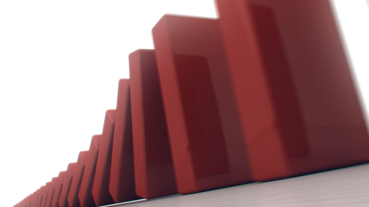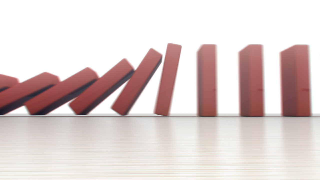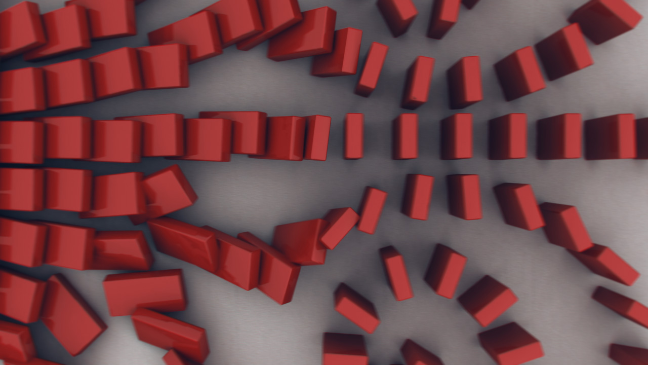 The only keyframed part of this entire animation is the first domino which was animated to fall onto the second and therefore trigger the reaction.