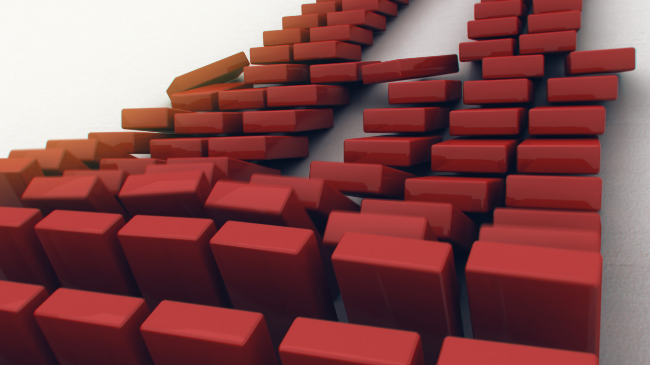 The only keyframed part of this entire animation is the first domino which was animated to fall onto the second and therefore trigger the reaction.