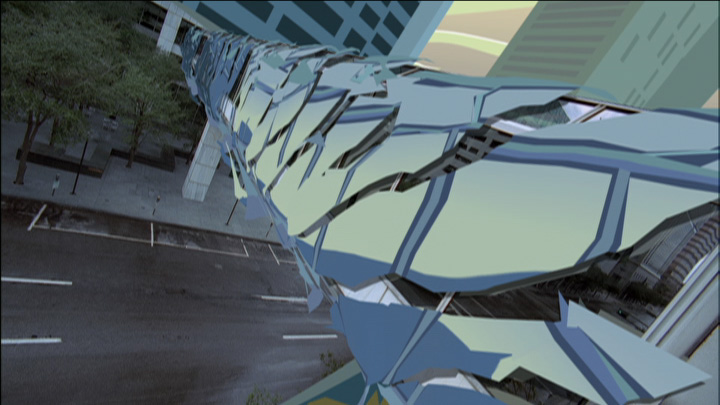 Toyota Matrix “Shift Reality” was a spot just recently completed in under 1 month for both cinema and television broadcast. The concept was to show an animated commercial in which Toyota’s new car accelerates to such high speeds that the air resistance ‘peels’ off the animation thus revealing the live-action vehicle underneath. We then follow with several beauty shots of the car driving throughout different environments until it reaches a stop by pulling a dramatic skid into a parking lot. The driver gets out, and the animation catches back up to the car wrapping itself around both the car and its environment.