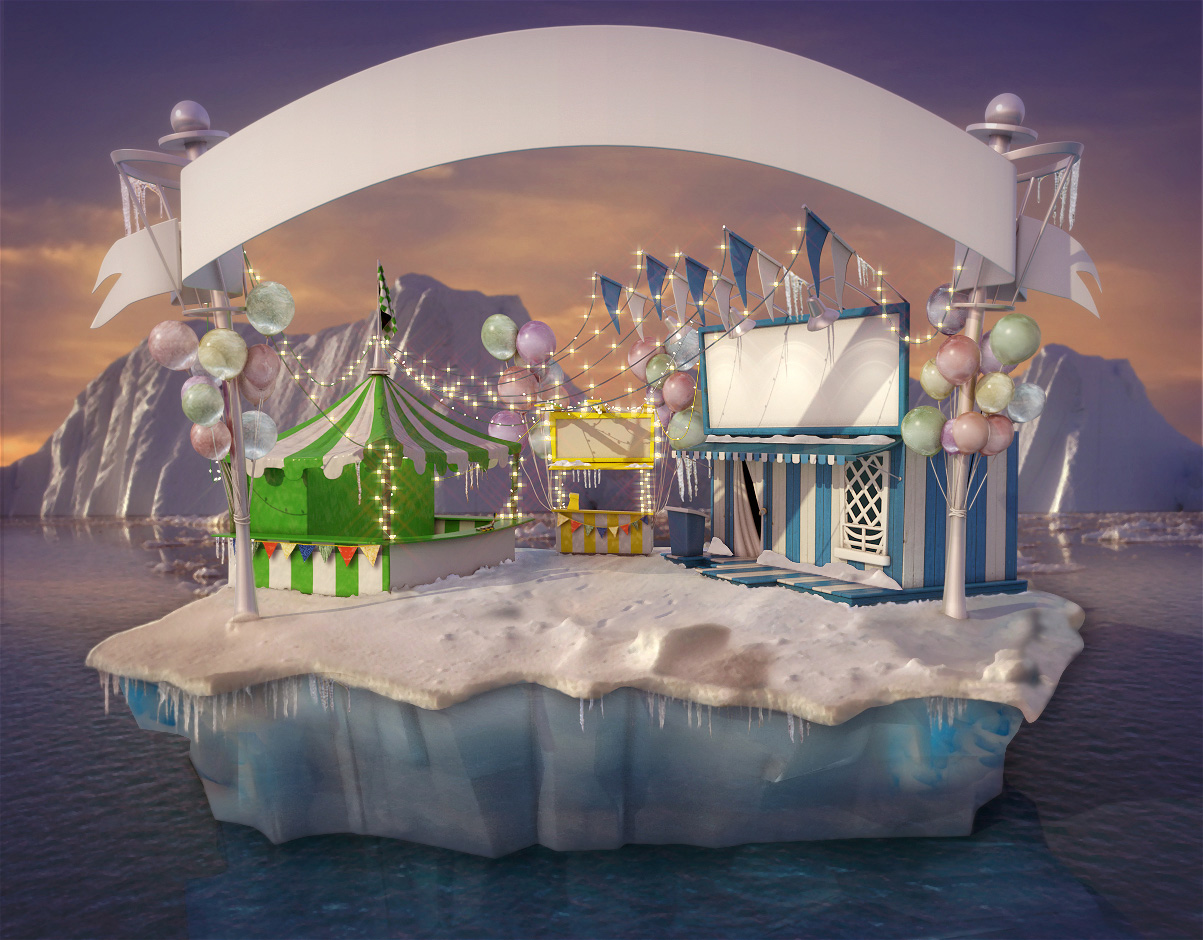 These are four backgrounds created for the Kid Cuisine interactive website using photo composite techniques combined with 3D imagery.